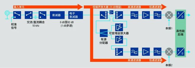 罗德与施瓦茨创新设计的FSWX频谱分析仪采用行业首创的多接收链路架构。该架构通过前端预选有效消减镜频干扰及杂散信号,其内置互相关模式可一键启动,无需外接功分器与附加校准流程。当双射频端口直连接收单元时(无需内置功分器),多接收路径可全面支持5G、WLAN等现代无线通信标准及雷达应用。如图1所示的双接收链路架构,为性能飞跃奠定基础。