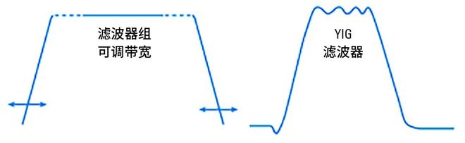 图4:滤波器组提供比YIG更宽的带宽和更平坦的频率响应,而YIG滤波器通常具有更优的带外信号抑制能力