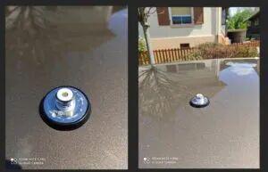 金属板切割完成后,冲孔器即可取出…将其从孔中取出。此时您应获得一个完美圆孔,无漆面碎屑且边缘无变形!