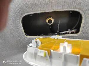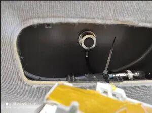 第一反应:去看看中央顶灯下面!……在我的车上,顶灯是卡扣式的,下面隐藏着一个足够大、足够深的空腔,可以穿过同轴电缆和底座!……此外,车身加强筋就在附近!……决定了,就选这里!!!最令人欣喜的是,这里几乎就在车顶的正中央,非常适合实现最佳性能!…… 用同轴电缆做个小测试……顺利通过!……一切就绪,可以开始了!!!……