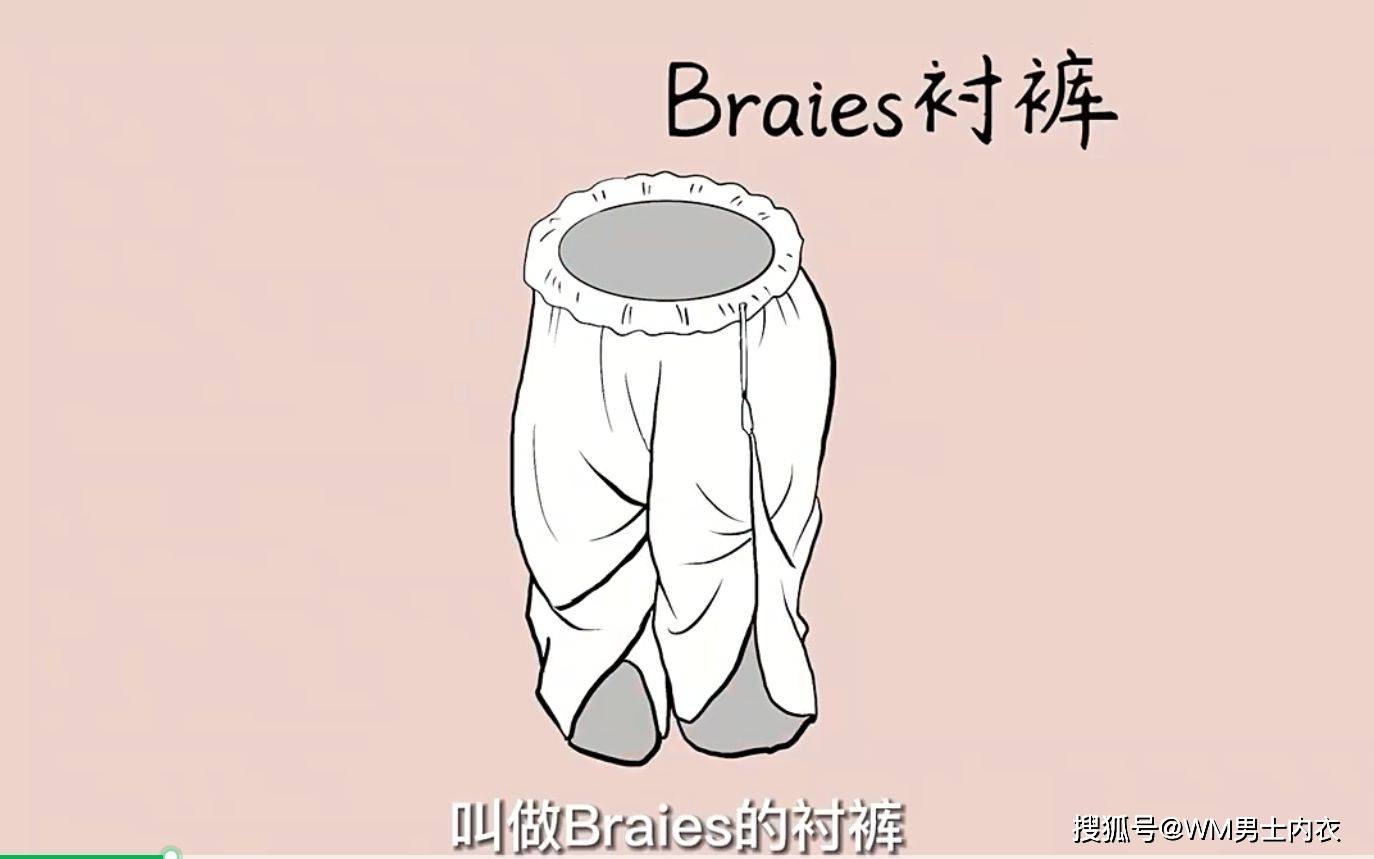Braies出现了。Braies是萨克森语,指口袋似的宽松衬裤,长及膝盖,用亚麻布做成,腰部穿有绳子可以束紧,从国王到农夫都穿它。到文艺复兴时期,衬裤变短,前面开了门襟,这样男士在小便时就不用脱下衬裤。打有皱褶的门襟要么钉扣子,要么用绳子抽紧,成为现代男裤款式的雏形。那时的男子不穿外裤,将紧身长筒袜套在衬裤外,用吊袜带固定,所以亨利八世将衬裤的裆部垫厚。历史学家推测,他可能在裤裆里藏了浸着药水的绷带,以缓解梅毒带来的痛苦。很多男子把衬裤门襟当做便利口袋,在里面装治疗性病的药品和钱。