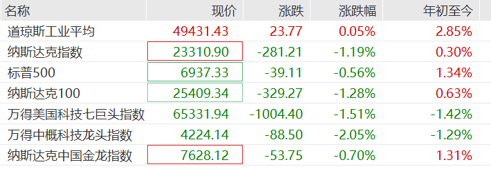 2月3日,美股开盘涨跌不一,截至23:37,道指涨0.05%,标普500指数跌0.56%,纳指小幅高开后转跌超1%。